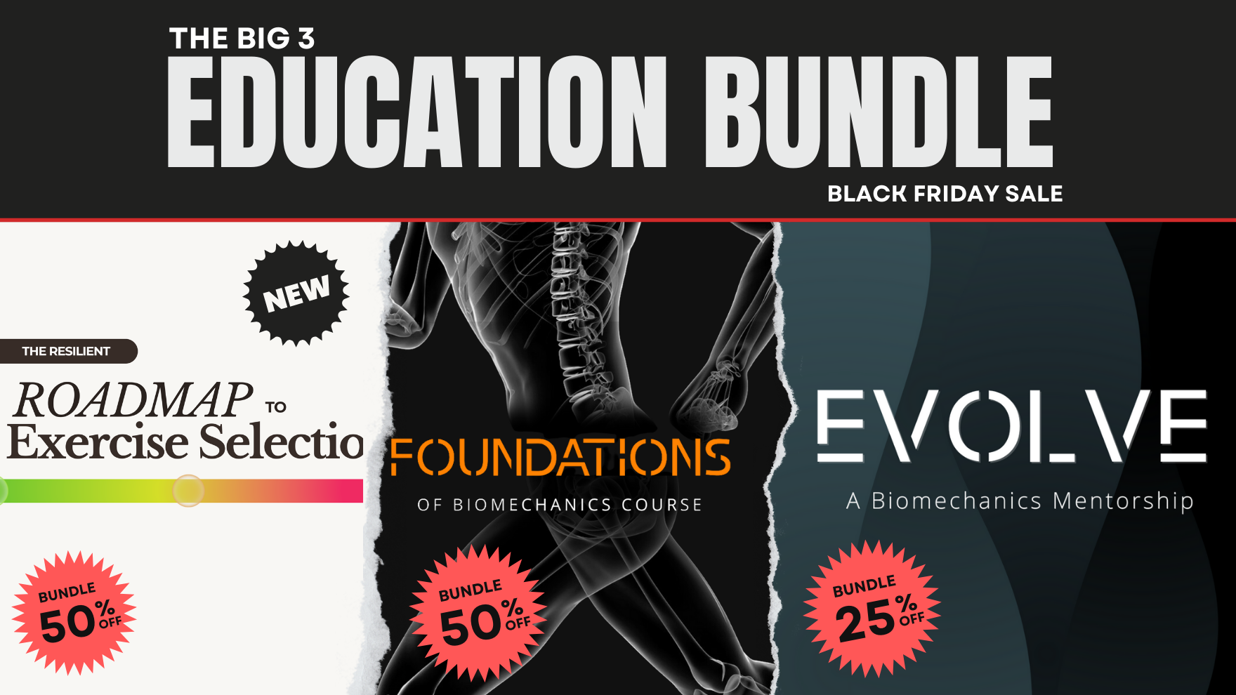 For Black Friday only, get ALL THREE of your core biomechanics education programs bundled together at the deepest discounts you will ever offer: